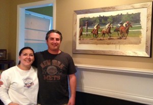 I am always so honored when someone asks me to paint something really special just for them and this was extra special. Not only are they very good friends of my older daughter but they have become friends to me also. Matt and Justine came to my very first show at Anne Irwin and I was so tickled that they would do that. Little did I know that they were already talking about if I could paint from a much loved photograph for them. I love to paint everything and if it has wonderful light and shadow on it- then I am game! Turns out it was horses and a great photo and the fun began. Justine showed me the photo and I loved it! Then we set about pulling quite the surprise for Matt’s 40th birthday! Justine pretended it just did not work out and then hoped it would be forgotten.