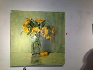 I had the most fun at the “Farm to Table” Opening Night at dk Gallery on Friday. The Gallery looked gorgeous and the folks were all fun and loved the theme. It was so special to be a part of my Sunflowers from the Farm painting going to it’s new home. A very sweet young man purchased the painting for his Mom! How cool is that? She had been looking at it and he decided right there on the spot to get it for her as a surprise. I had spoken with her earlier about both sunflower paintings and she had told me why she liked this one better. Always love learning what draws people to paintings. I am all about “the Moms” so this new collector friend stole my heart. We kept it a secret but all her friends that were there for the show found out and were as excited as we were! Can’t wait to see it hanging and appreciate that John choose a painting from me for his mom. Very special indeed! Thanks to John and dk!