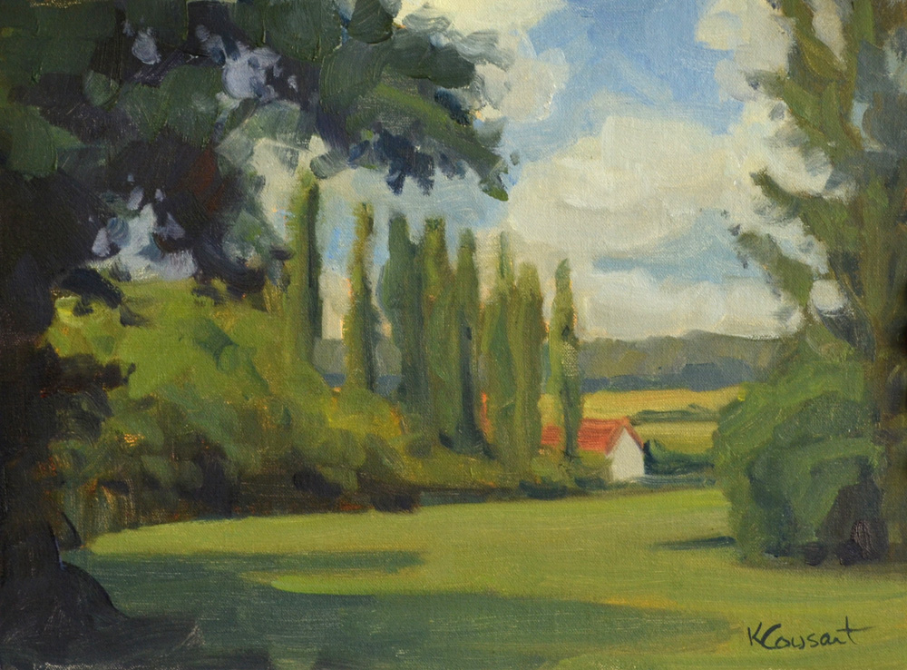 In addition, I welcome new subscribers, here you can Subscribe to my Monthly Newsletter. I hope that you will visit my website and that it will feel like a wonderful gallery to view my art. All text and photos are property and copyright©KathyCousart, 2012 It seems it is becoming a tradition and I will end my newsletter with something peaceful and hope you will take a moment out of your busy day to just enjoy the painting and the moment. French Countryside, 12 x 16 Oil on Linen