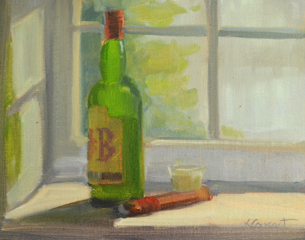 FRESH OFF MY EASEL1o x 20 Oil on Linen Break out the champagne! Cheers everyone as I have so much to celebrate and am so thankful for all the wonderful things that have been happening and are coming my way! Who says hard work doesn't pay off? I discovered this fabulous and fun rose champagne through friend Nancy Franke. Just had to purchase some but wanted to paint it first because it is so pretty! I loved painting that gorgeous light shining through the champagne bottle and adore this painting. It is sitting on my easel and I will be sad to see it go. For me it is gorgeous light and just a celebration painting of how rich our lives can be. I love painting in this pretty higher key with lots of gorgeous light and color! I am so excited to share with y'all that when I did the Emerging Artist Show at the Anne Irwin Gallery back in August they honored me by inviting me back for the Small Works Show that runs the whole month of December. I am thrilled to join their "big artists" for a special Small Works Show and look forward to opening night on Friday, December 7th. Mark your calendars! They throw amazing opening nights and hope you will join me at Anne Irwin Gallery,690 Miami Circle in Atlanta. On the painting below...Always looking to paint that light on things and this was fabulously fun!! I did try the scotch, very smooth- gave Jim Richards the cigar! Painting should be fun, right?! Sunlit Scotch and Cigar in Window Sill 11 x 14, Oil on Linen,