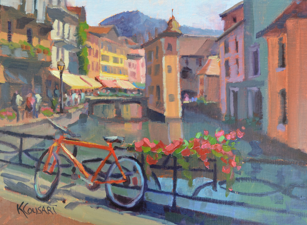 Now for just a bit about Tour de France...I fell in absolute love with this scene and had to paint it. Loved the light and all the wonderful components to hold your interest. I felt an instant connection and tried to portray the charm with every stroke- hope you feel the same.